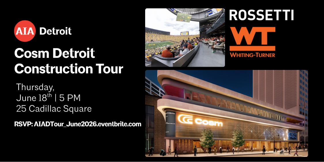 RSVP: https://AIADTour_June2026.eventbrite.com Join AIA Detroit, ROSSETTI, and Whiting-Turner for a construction tour of Cosm Detroit! AIA HSW Learning Unit(s) available […]